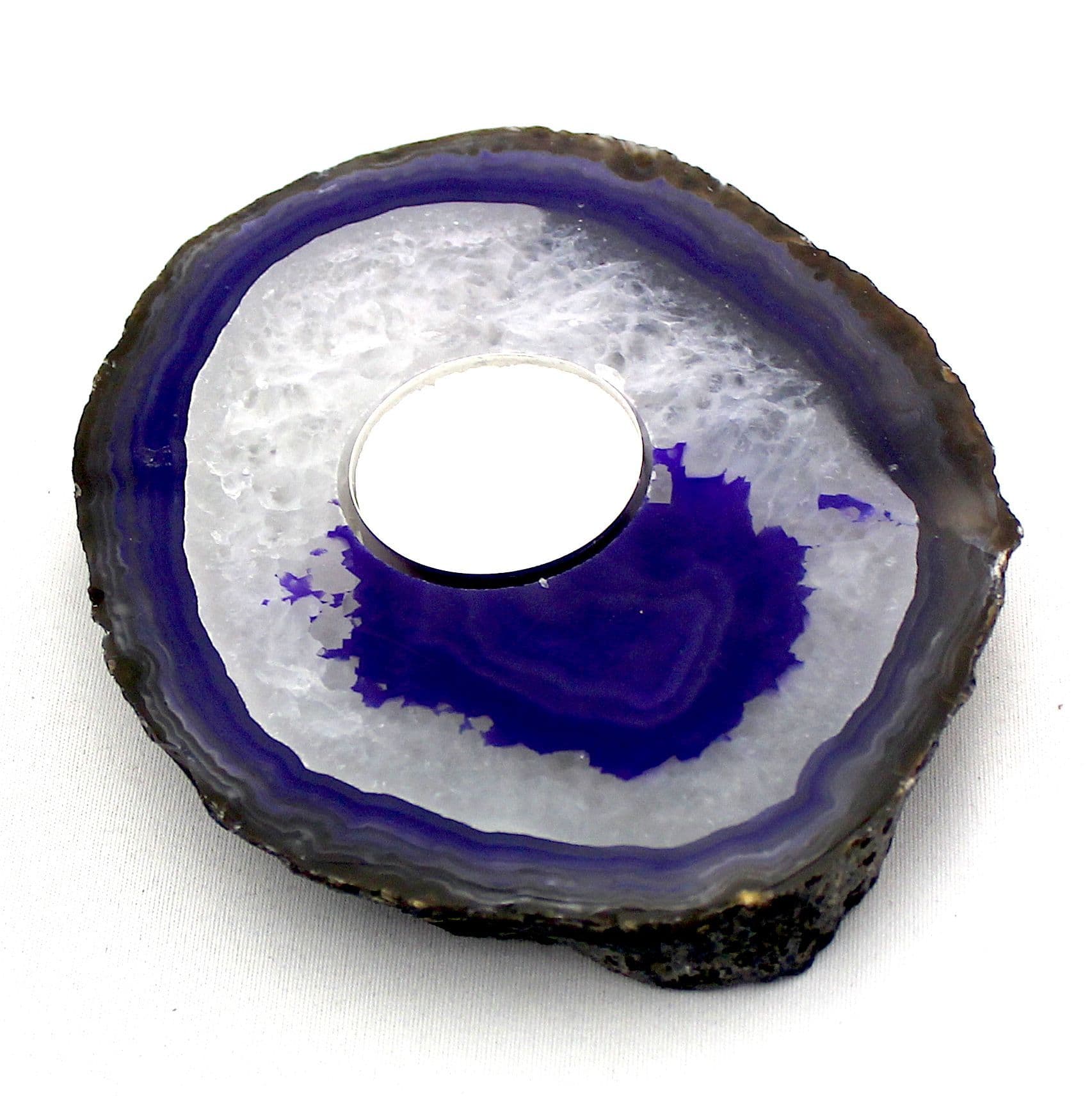 Agate beautiful and mysterious, known for its calming effect, from South America agate sliced slab tea light holder, with different patterns and hues, a gift of harmony and peace.