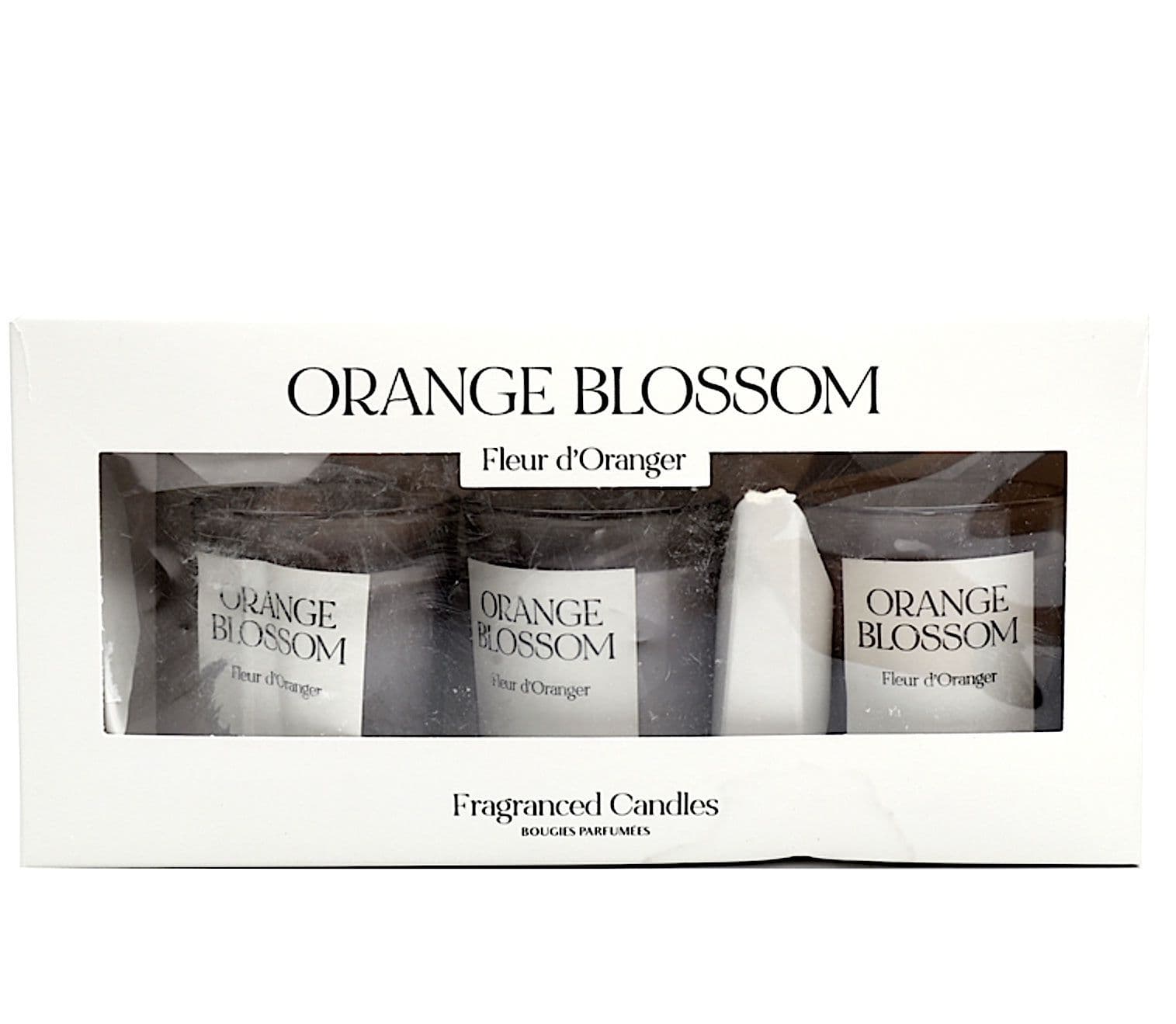 Orange blossoms with a hint of lavender scented candles, a mix of calming and bursting effect, perfect for a moment of pause and relaxation. Set of three (3) voltive candles presented in a gift box.