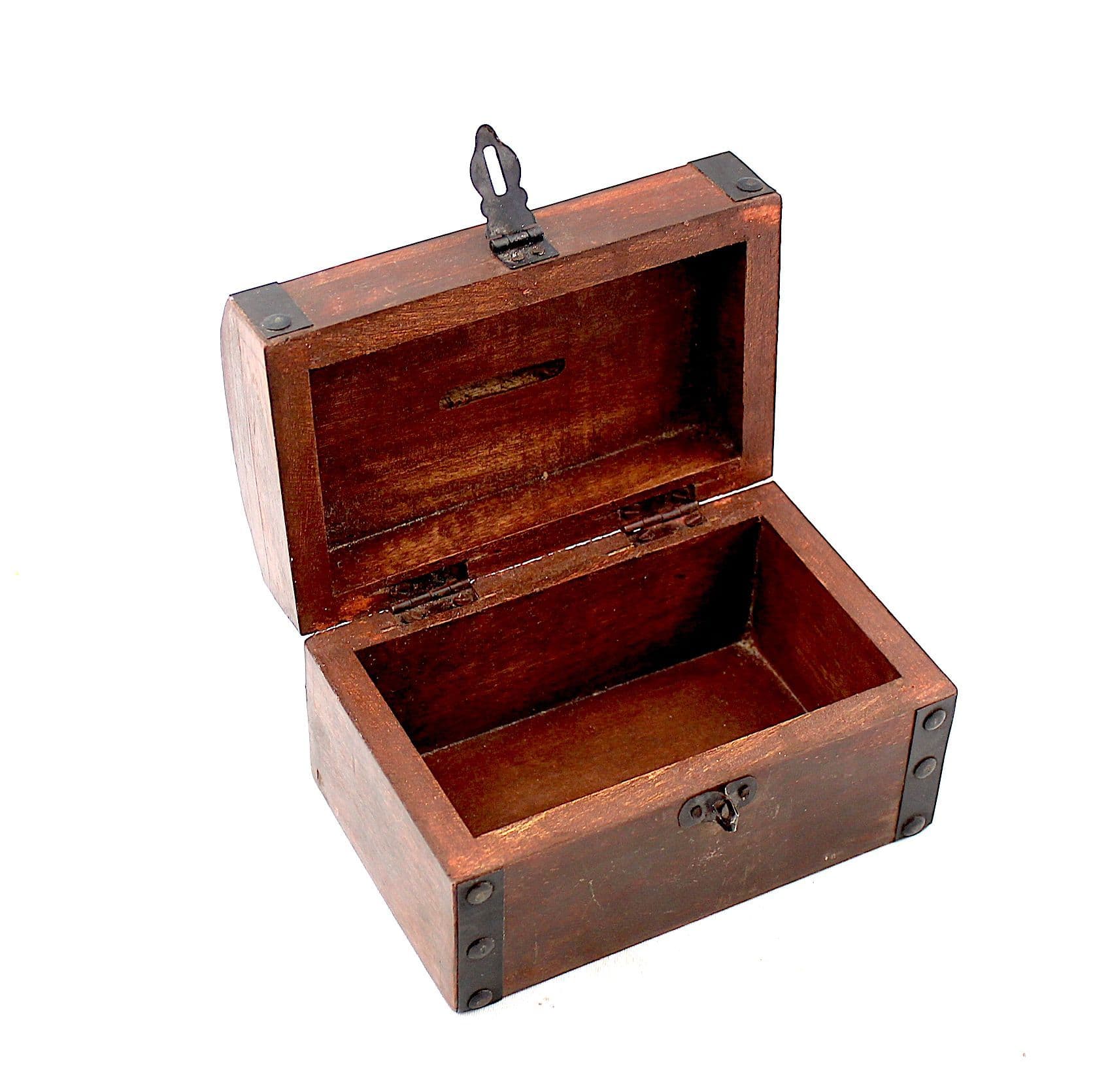 A rustic treasure chest that evokes of high seas and pirates, handcrafted solid wooden money box with padlock. A money box designed for a lifetime. (Includes locking mechanism not advisable for children below 12 years)