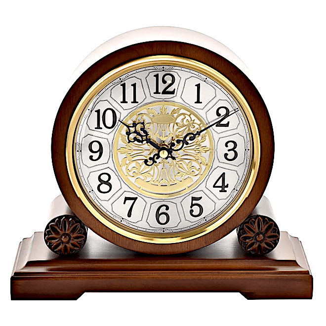 Elegant mantel clock walnut finish. Serpentine hands, Arabic numbers add to its pedigree. Clock chimes on the hour, every hour.with the iconic Westminster melody, quartz movement. A clock for the discerning time keeper.