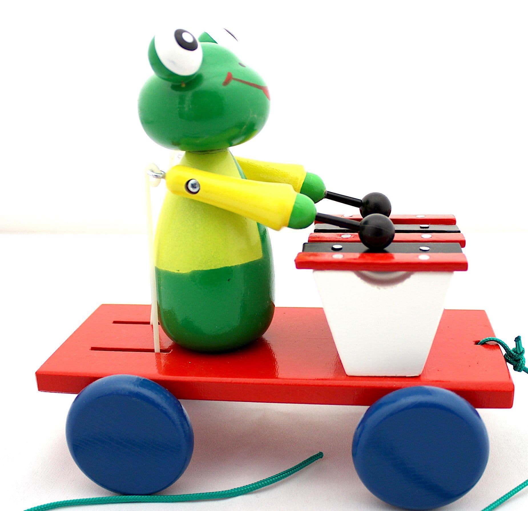 Traditionally made wooden pull toy, in vibrant colours. Player plays the xylophone as the cart is pulled. Motion and sound, a sure way for little ones to have hours of fun .